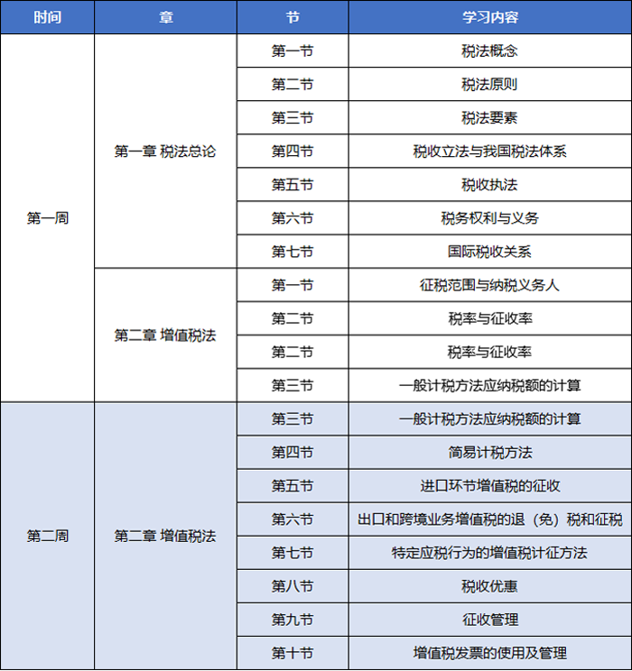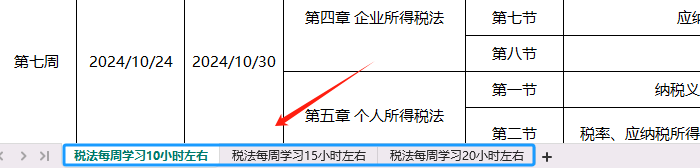 學習計劃表根據(jù)每周學習該科目的時長劃分為三種情況,分別為“稅法每周學習10小時左右”、“稅法每周學習15小時左右”和“稅法每周學習20小時左右”,考生請根據(jù)自身實際情況,選擇對應表格。