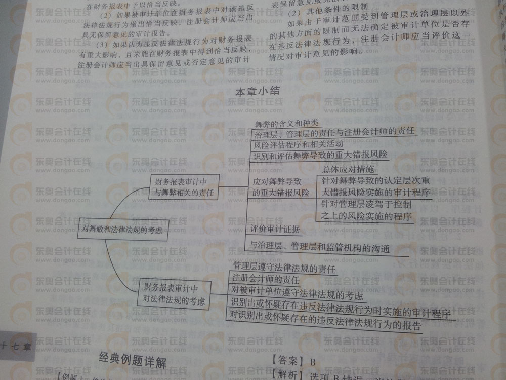 2013年注會考試《審計》第十七章導圖解析:對舞弊和法律法規(guī)的考慮