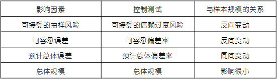 注冊(cè)會(huì)計(jì)師在控制測(cè)試中確定的樣本規(guī)模受到以下因素的影響,如下表: