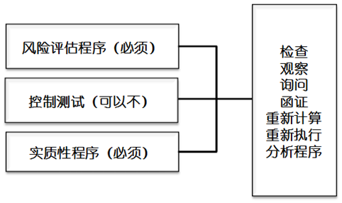 注冊會計師可以將七種具體審計程序單獨或組合起來用作風(fēng)險評估程序、控制測試和實質(zhì)性程序,或者說,注冊會計師在三類總體審計程序的取證環(huán)節(jié)可以單獨或組合用到七種具體審計程序來實現(xiàn)。