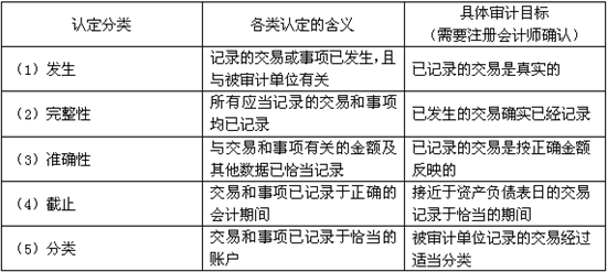 2014《審計(jì)》基礎(chǔ)考點(diǎn):各類認(rèn)定與具體審計(jì)目標(biāo)