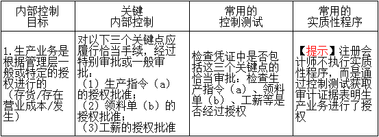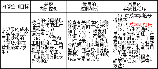 【高頻考點(diǎn)】:成本會(huì)計(jì)制度的內(nèi)部控制目標(biāo)、關(guān)鍵內(nèi)部控制和審計(jì)測(cè)試一覽表
