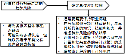 2.注冊會計師針對舞弊風險,確定總體應對措施,如下圖所示: