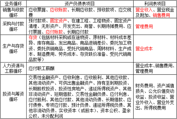 【知識點】:業(yè)務(wù)循環(huán)與主要財務(wù)報表項目對照表