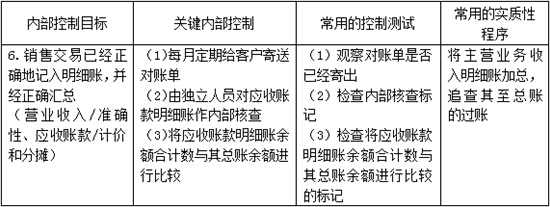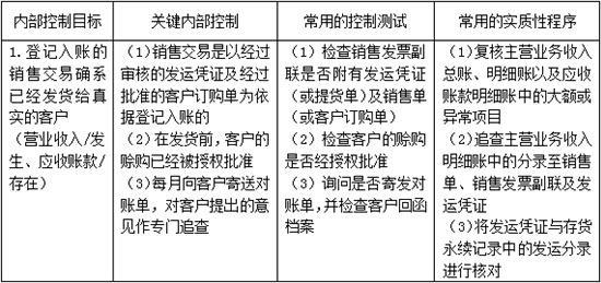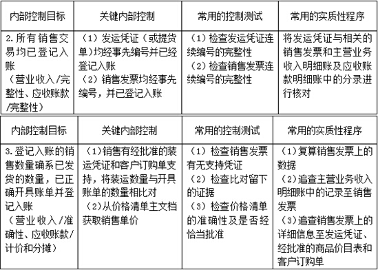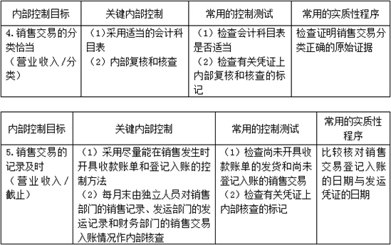 【知識點】:銷售交易的內(nèi)部控制目標、關(guān)鍵內(nèi)部控制和審計測試一覽表