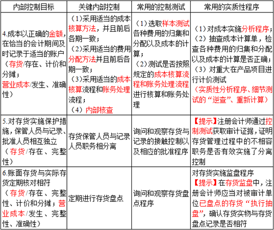 【知識(shí)點(diǎn)】:成本會(huì)計(jì)制度的控制目標(biāo)、關(guān)鍵內(nèi)部控制和審計(jì)測(cè)試一覽表