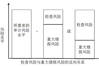 即:y=k/x,可見檢查風(fēng)險(y)是由重大錯報風(fēng)險(x)確定的,二者之間是反向關(guān)系。