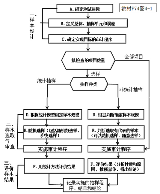 【解讀】在控制測試中使用非統(tǒng)計抽樣時,抽樣的基本流程和主要步驟與使用統(tǒng)計抽樣時相同,只是在確定樣本規(guī)模(D)、選取樣本(E)和推斷總體(F)的具體方法上有所差別。