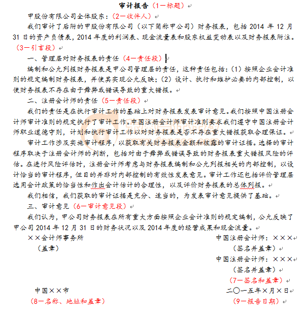 【解讀】以下審計報告中增加了審計報告基本要素順序號。