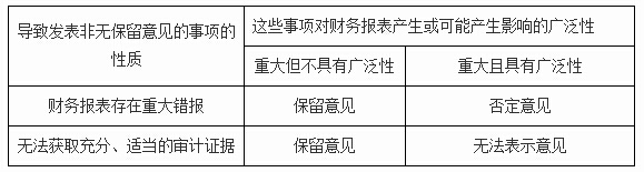 2.注冊(cè)會(huì)計(jì)師就導(dǎo)致非無(wú)保留意見(jiàn)的事項(xiàng)對(duì)財(cái)務(wù)報(bào)表產(chǎn)生或可能產(chǎn)生影響的廣泛性作出的判斷。