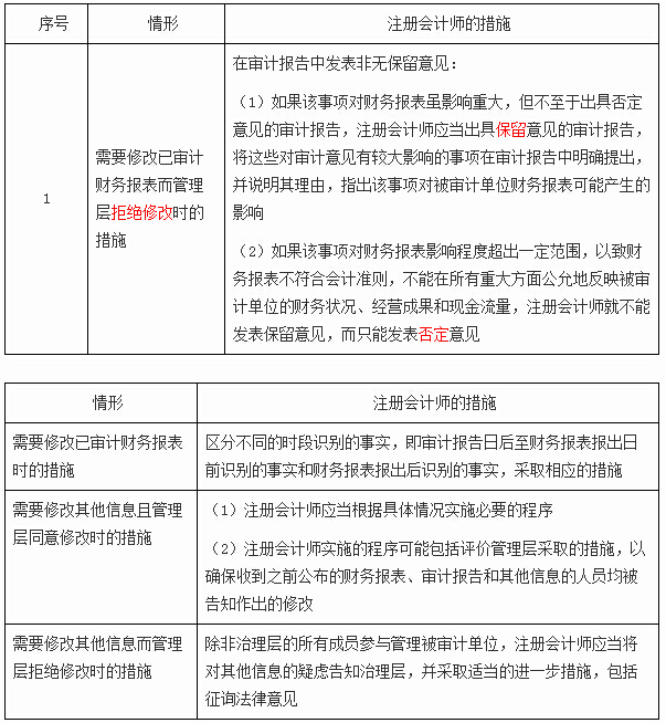 2.在審計(jì)報(bào)告日前識(shí)別重大不一致時(shí)的措施(如下表)