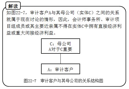 (二)當一個實體在審計客戶中擁有控制性的權(quán)益,并且審計客戶對該實體重要時,會計師事務(wù)所、審計項目組成員或其主要近親屬不得在該實體中擁有直接經(jīng)濟利益或重大間接經(jīng)濟利益