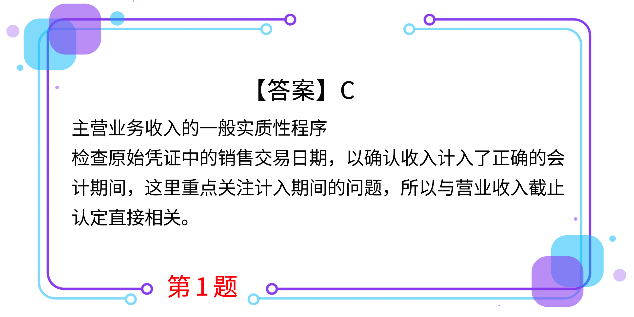 1.檢查原始憑證中的銷售交易日期(客戶取得控制權(quán)的日期),以確認收入是否計入了正確的會計期間,與營業(yè)收入( )認定直接相關(guān)。