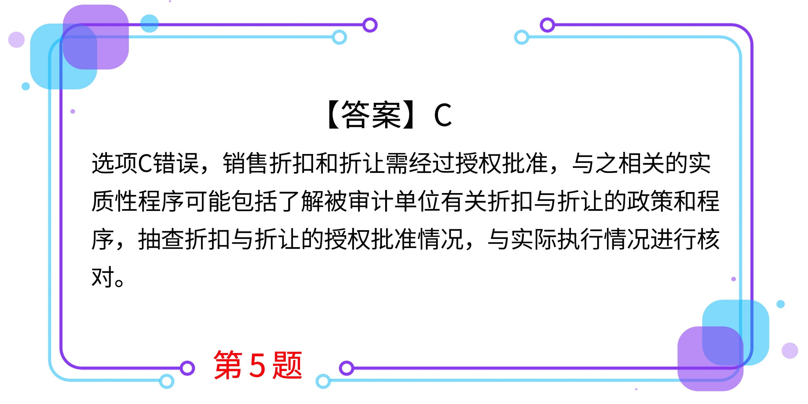 A.涉及的實質(zhì)性程序可能包括獲取折扣與折讓明細表,復(fù)核加計正確,并與明細賬合計數(shù)核對相符