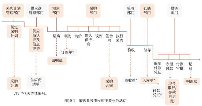 教材在本章中以一般制造業(yè)企業(yè)為例說明采購業(yè)務(wù)流程,如圖10-1所示。