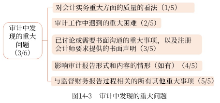 (2)溝通的事項(xiàng)決定溝通形式,其中4/6和5/6應(yīng)當(dāng)采用書(shū)面形式進(jìn)行溝通,其他事項(xiàng)(1/6、2/6、3/6和6/6),注冊(cè)會(huì)計(jì)師根據(jù)職業(yè)判斷確定采用書(shū)面形式還是口頭形式。