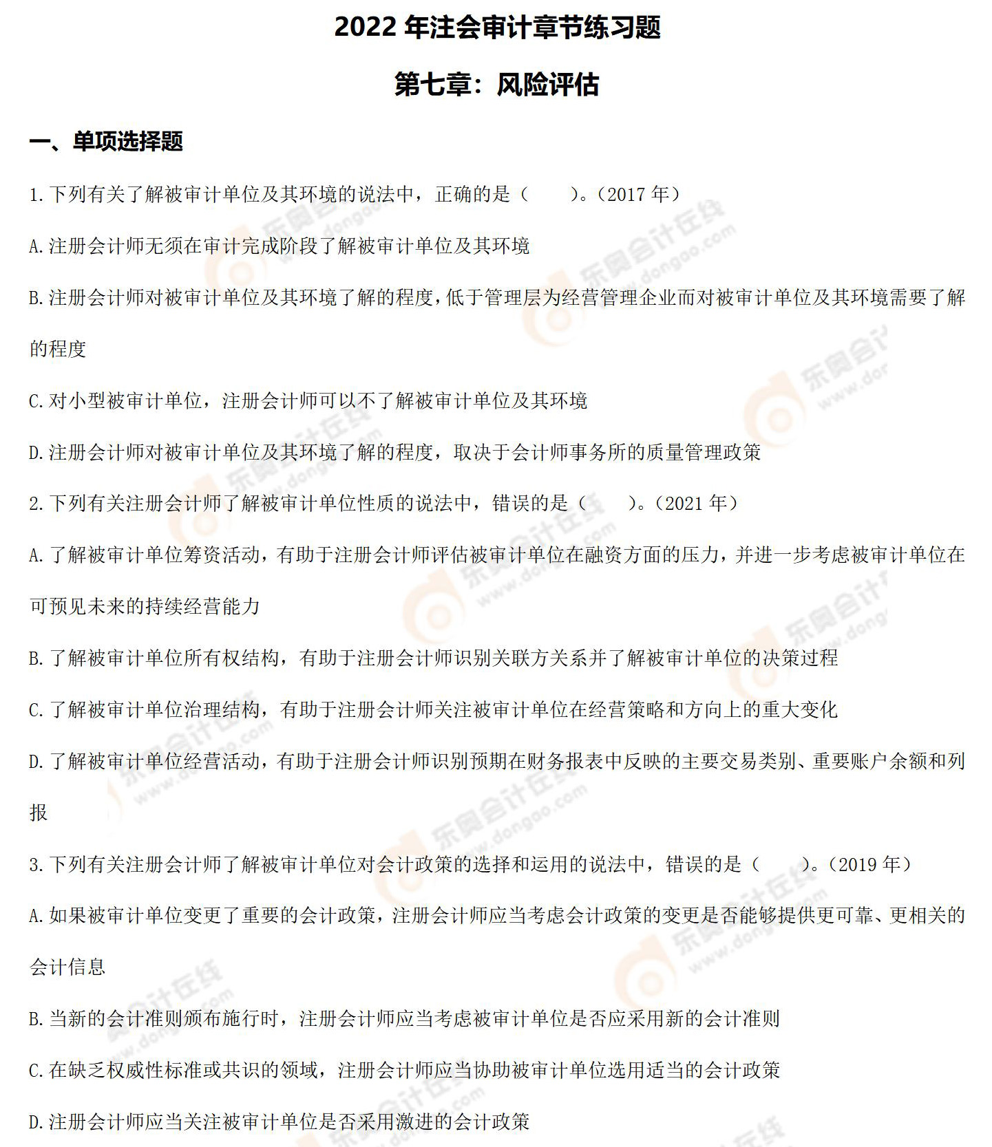 注:章節(jié)練習(xí)題出自東奧名師劉圣妮老師的2022年《審計(jì)》基礎(chǔ)精講班課程講義