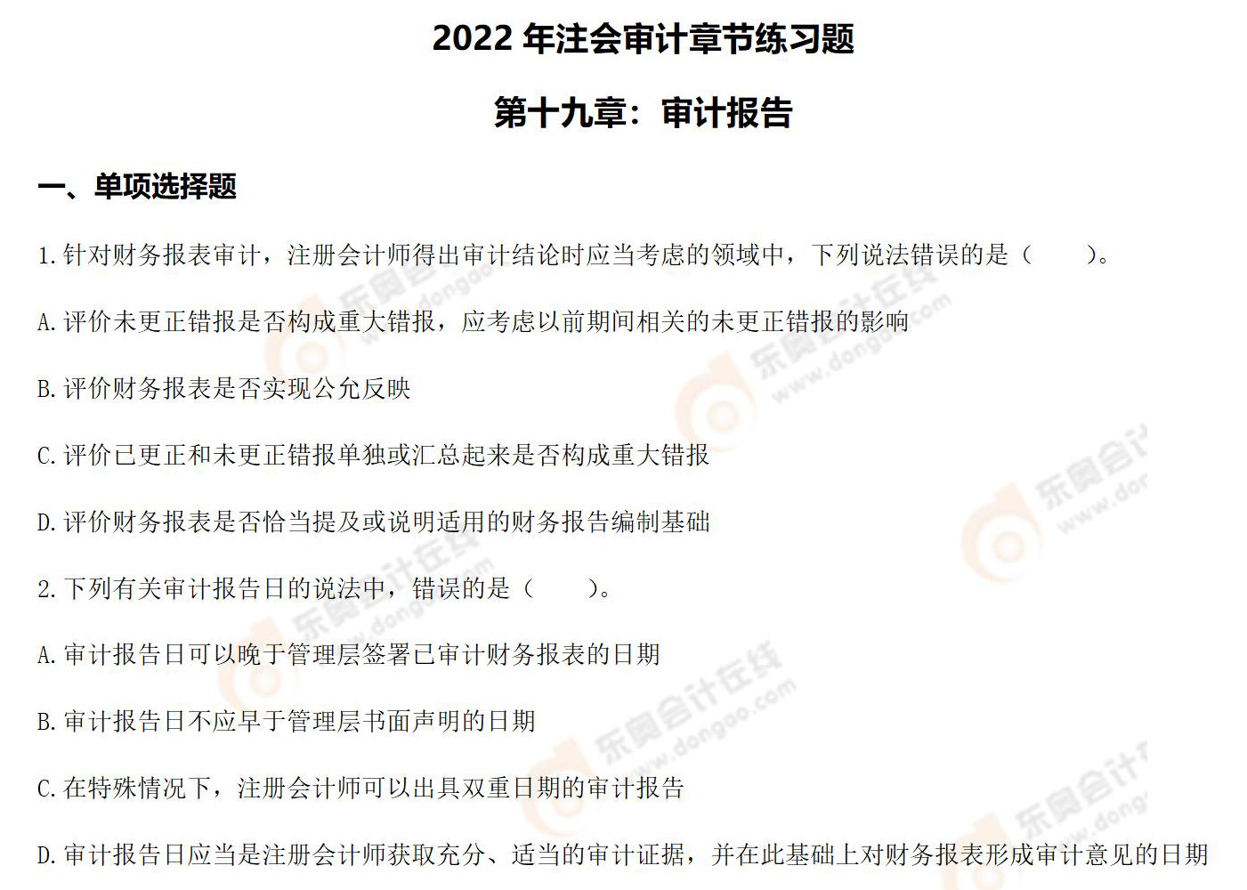 注:章節(jié)練習(xí)題出自東奧名師劉圣妮老師的2022年《審計(jì)》基礎(chǔ)精講班課程講義