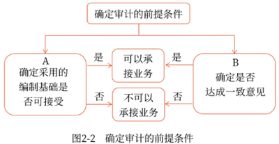 判斷審計的前提條件(包含兩個必不可少的方面)是否同時滿足,如圖2-2中的條件A和條件B。