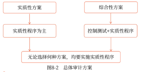 如圖8-2所示,總體審計方案包括實(shí)質(zhì)性方案和綜合性方案。