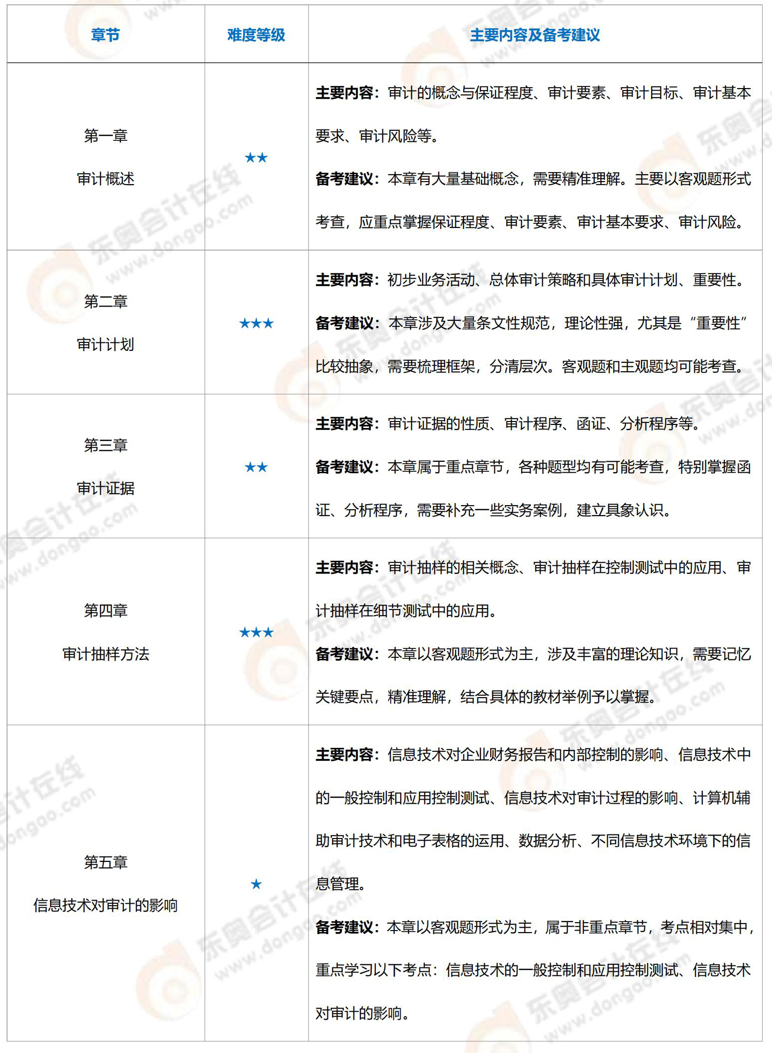 審計各章難度及備考重點