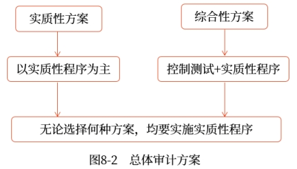 總體審計方案應對的是評估的認定層次重大錯報風險,包括實質性方案和綜合性方案,如圖8-2所示。
