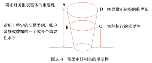 集團項目組或代表集團項目組的組成部分注冊會計師應當運用該組成部分的重要性(即圖16-5中的小杯子),對組成部分財務信息實施審計。