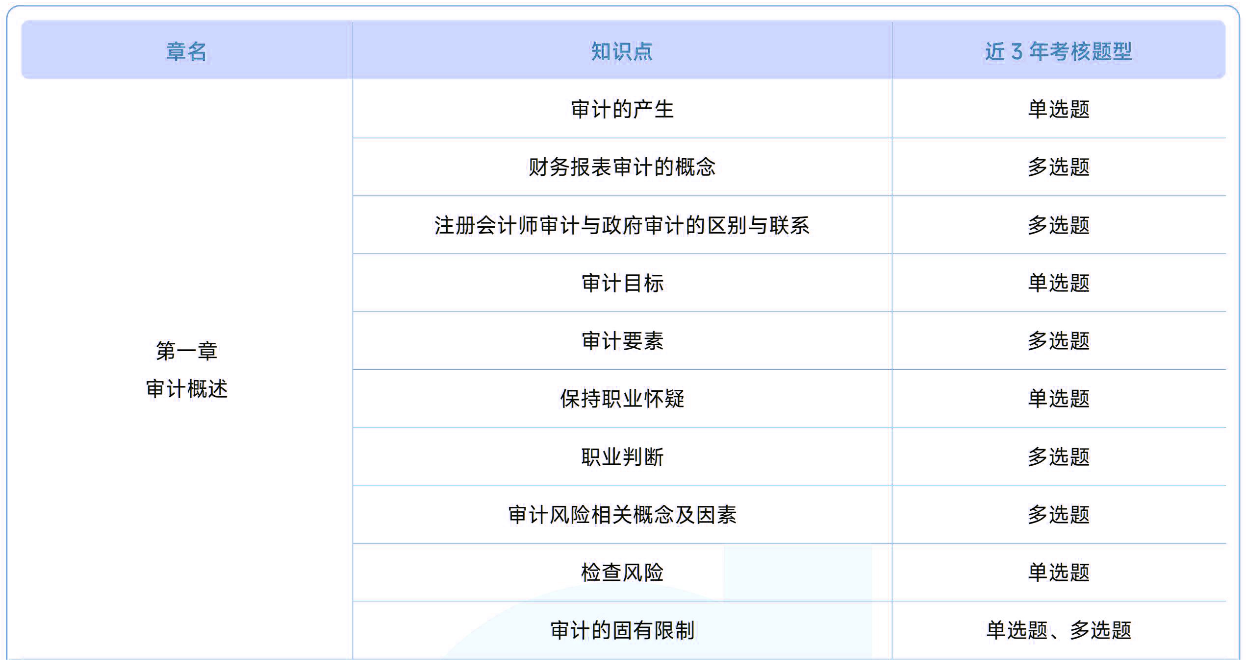 《審計(jì)》第一章內(nèi)容作為基礎(chǔ)知識(shí),既可以考核客觀題,也可以在主觀題中得以體現(xiàn)。尤其關(guān)于認(rèn)定的理解,是考核綜合題的必備知識(shí)點(diǎn)。本章近幾年平均分值6分左右。2024年考核了多選題。