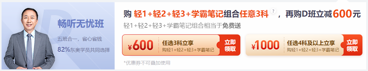 凡購輕1+輕2+輕3+學(xué)霸筆記組合任意3科,再購D班立減600元