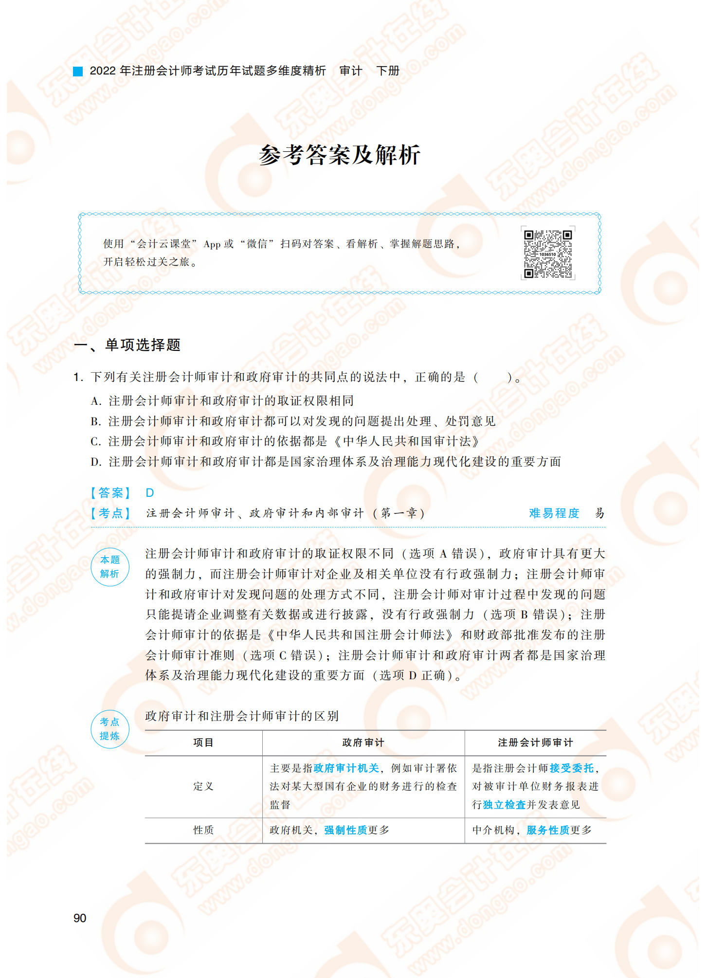 以上就是2022年注會審計《輕松過關(guān)?三》電子版免費試讀內(nèi)容。好的輔導(dǎo)書,值得被優(yōu)秀的考生有效利用。希望2022年注會審計《輕松過關(guān)?三》能夠幫助大家提高備考效率,順利通過注會考試