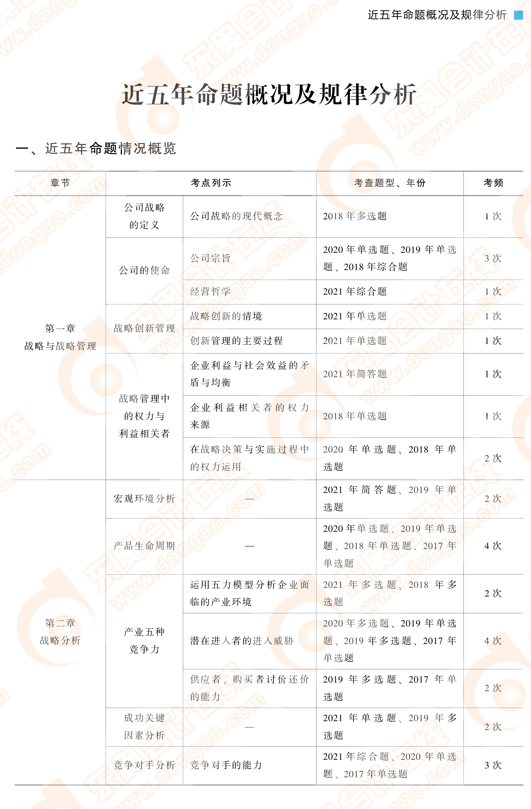 規(guī)律分析:統(tǒng)計(jì)近五年真題考查情況,繪制考點(diǎn)地圖,帶您掌握考點(diǎn)分布情況,重者恒重,做到胸中有數(shù)。