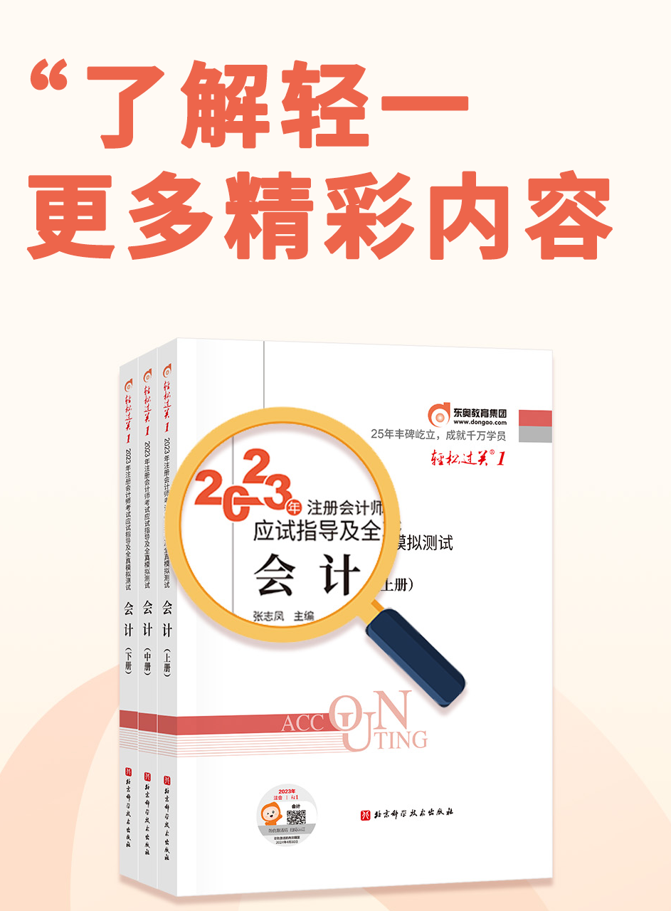 2023年注會(huì)考試基礎(chǔ)階段備考正在進(jìn)行中,除了注會(huì)官方教材,考生們同樣會(huì)需要一本優(yōu)質(zhì)輔導(dǎo)書(shū)來(lái)輔助學(xué)習(xí),如何挑選一本備考輔導(dǎo)書(shū)成了多數(shù)注會(huì)考生非常關(guān)心的問(wèn)題。今天,馳騁財(cái)會(huì)培訓(xùn)界15年的老江湖——東奧副總裁小蘭來(lái)說(shuō)說(shuō)東奧《輕一》,為大家科普怎樣去判斷一本財(cái)會(huì)輔導(dǎo)書(shū)到底好不好,不要錯(cuò)過(guò)哦!戳下方圖片直接觀看視頻 ↓ ↓ ↓