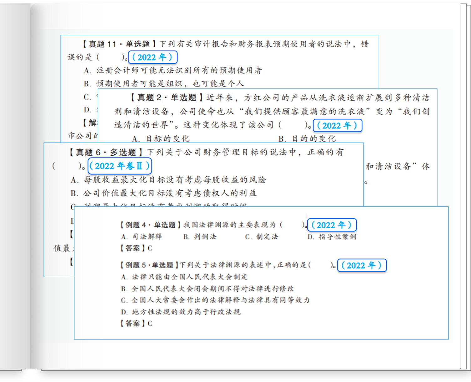 同時(shí),我們?cè)诟骺啤遁p一》中都發(fā)現(xiàn)了2022年剛剛考過(guò)的真題。這是《輕一》對(duì)“新”的另一重定義——“收錄新”。