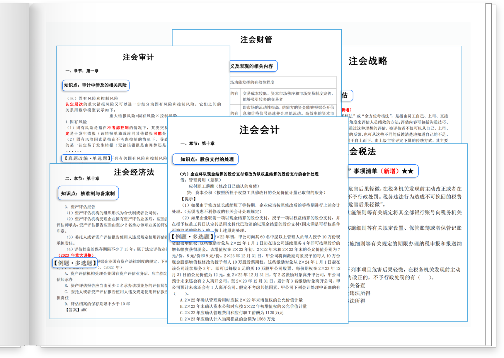 另外,為了能讓考生全方位地掌握新增知識(shí)點(diǎn),學(xué)練結(jié)合,東奧六科著書(shū)名師在注會(huì)《輕一》中傾盡心力,根據(jù)多年教學(xué)經(jīng)驗(yàn)和對(duì)考試趨勢(shì)的把控,結(jié)合新考點(diǎn)新政策,為每科新增內(nèi)容擬編例題、改編真題。