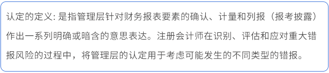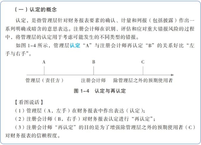 《審計(jì)》雖然是一門偏文的學(xué)科,但大量的文字表述不是簡(jiǎn)單地“望文生義”就可以理解的。比如《審計(jì)》第一章涉及到的“認(rèn)定的概念”。