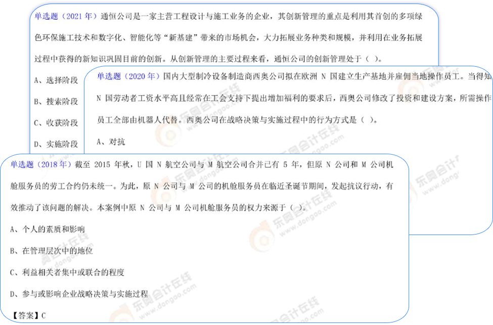 除了考查全面以外,《戰(zhàn)略》考試文字性的題目還會(huì)結(jié)合實(shí)際,與管理學(xué)和經(jīng)濟(jì)學(xué)緊密連接,這就要求考生在理解知識(shí)、結(jié)合實(shí)務(wù)、夯實(shí)基礎(chǔ)的同時(shí),還要具有案例分析能力。