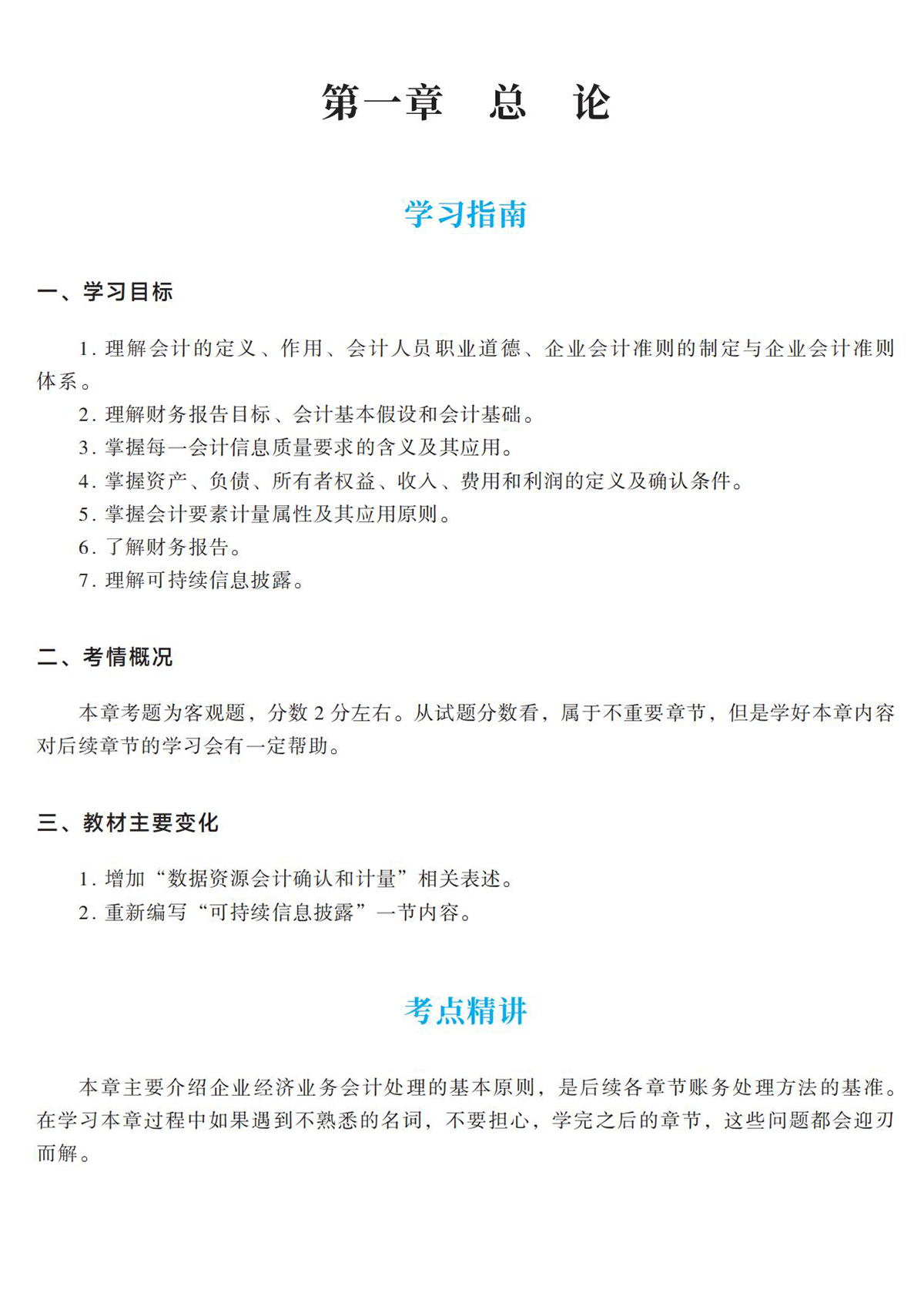 首先是學習指南部分,老師將從學習目標、考情概況、教材變化等幾個角度,讓考生對整章內(nèi)容有宏觀的把握。