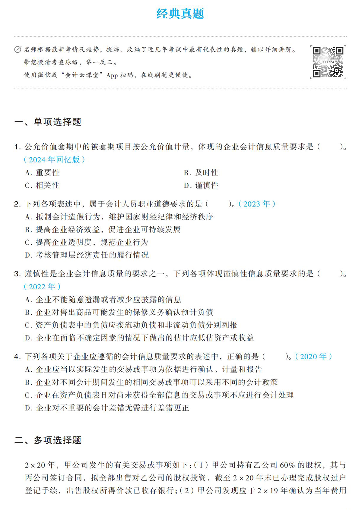 最后是經(jīng)典真題及新編好題部分,《輕一》將歷年考試中涉及該章節(jié)考點的習題也編入書中,全章知識學完后,可搭配掃碼視頻講解,了解往年的真題是如何考查的,掌握出題思路和方向。同時還配有精編好題,順應未來考試趨勢新編習題,幫助考生檢測知識掌握情況。習題、答案解析分開的模式,可最大程度測出你真實的水平。