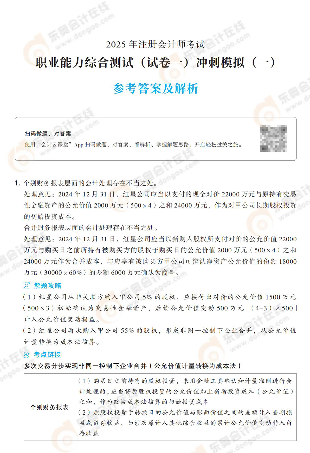 2025年注會綜合《輕一》為《綜合階段精講及同步案例》,其中包含三大核心亮點:考點新,內(nèi)容精,理解更透徹!以下為《輕一》圖書試讀,輔導資料如何選擇?眼見為實才有效果!
