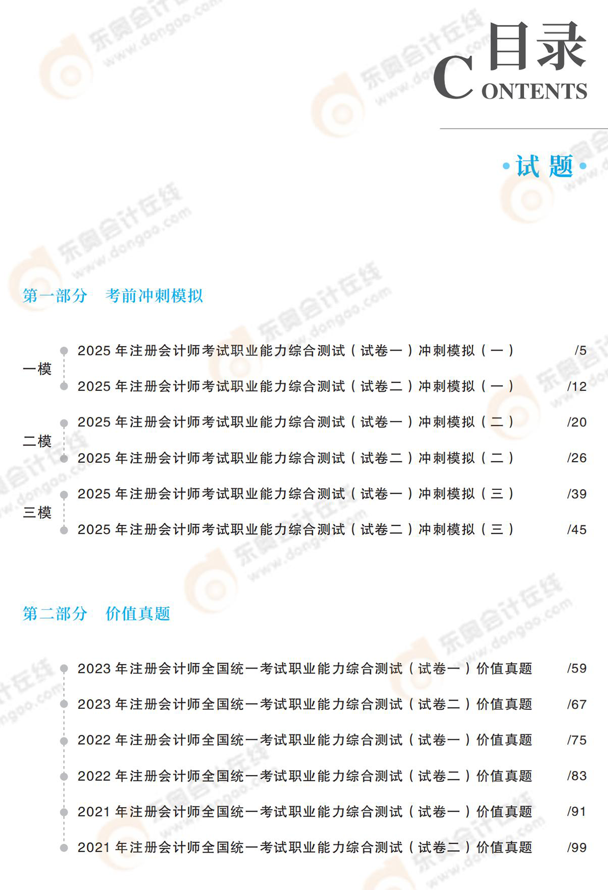2025年注會綜合《輕二》為《6套真題+6套模擬》,6套試題卷選擇近三年價值試題,逐題詳盡解析,帶領(lǐng)考生做透做懂。6套模擬題共三輪進階式???,幫助考生逐步提升,每套都能發(fā)揮不小的作用。