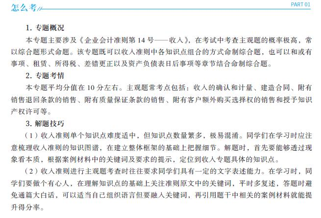 注會(huì)考試的大題也就是主觀題,包括計(jì)算分析題、案例題、綜合題等題型,不同于選擇題可以直接選擇選項(xiàng),這類題需要準(zhǔn)確輸出(敲字),而且往往綜合性較強(qiáng),會(huì)聯(lián)系不同章的考點(diǎn)關(guān)聯(lián)考查,因此也是絕大多數(shù)考生的失分重災(zāi)區(qū)。按專題維度分區(qū),可以融會(huì)貫通考點(diǎn),也可以有針對(duì)性的根據(jù)自己的薄弱點(diǎn)集中練習(xí)。
