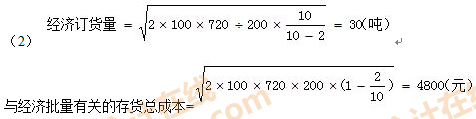 與批量有關(guān)的存貨總成本=500×720×200=12000(元)