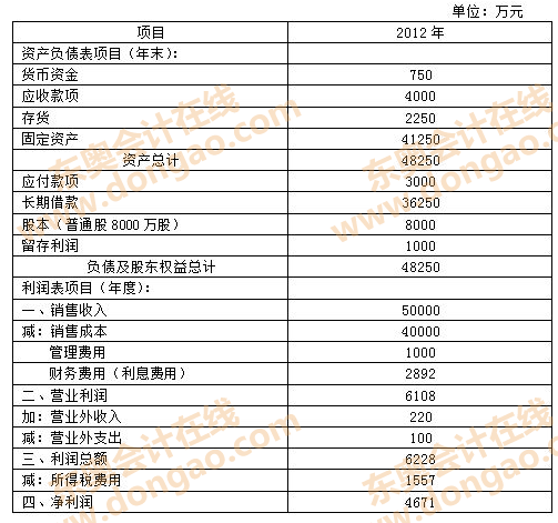 1.甲公司是一家火力發(fā)電上市企業(yè),2012年12月31日的股票價格為每股5元。為了對當前股價是否偏離價值進行判斷,公司擬對企業(yè)整體價值進行評估,有關資料如下: