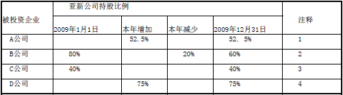 亞新公司2009年度部分長期股權(quán)投資持股比例變動情況及相關(guān)關(guān)聯(lián)交易情況摘錄如下: