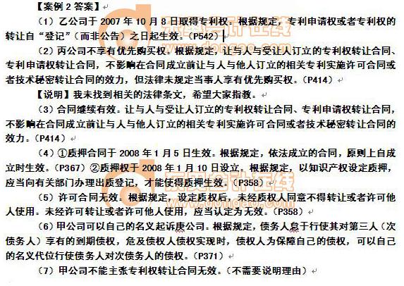 【輕松過關(guān)一】“專利權(quán)的轉(zhuǎn)讓”見P322(其中明確指出專利權(quán)的轉(zhuǎn)讓自登記而非公告之日起生效),“專利權(quán)的質(zhì)押”見P213(其中明確指出未經(jīng)質(zhì)權(quán)人的同意,出質(zhì)人將專利權(quán)轉(zhuǎn)讓或者許可他人使用的,應(yīng)當(dāng)認定為無效),“代位權(quán)”見P228(其中明確解釋了代位權(quán)中“怠于”的含義)。