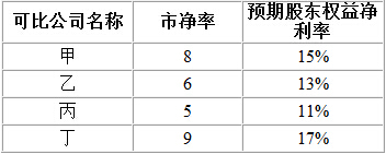 1.A公司是一家制造醫(yī)療設備的上市公司,每股凈資產(chǎn)是4.6元,預期股東權益凈利率是16%,當前股票價格是48元。為了對A公司當前股價是否偏離價值進行判斷,投資者收集了以下4個可比公司的有關數(shù)據(jù)。
