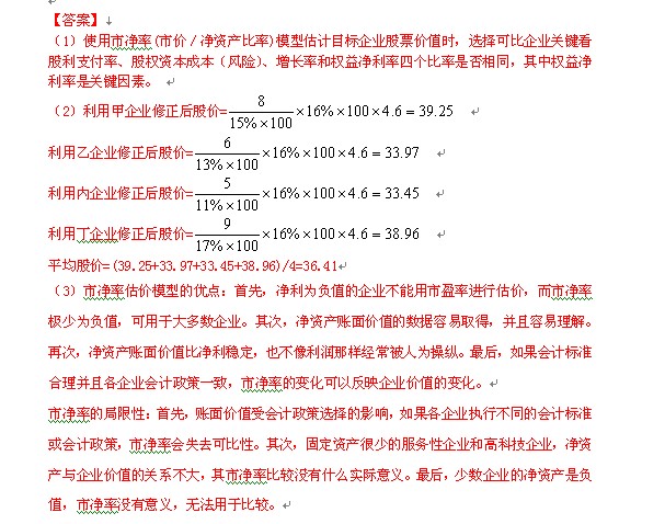 (3)分析市凈率估價模型的優(yōu)點和局限性。