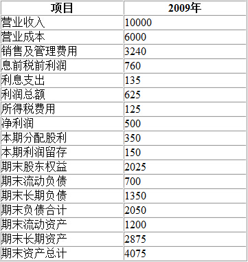 2.B公司是一家制造企業(yè),2009年度財務報表有關數(shù)據(jù)如下: