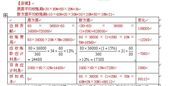 為了擴大銷售量、縮短平均收現(xiàn)期,公司擬扒出“5/10、2/20、n/30”的現(xiàn)金折扣政策。采用該政策后,預計銷售量會增加15%,40%的顧客會在10天內(nèi)付款,30%的顧客會在20天內(nèi)付款,20%的顧客會在30天內(nèi)付款,另10%的顧客平均在信用期滿后20天付款,逾期應收賬款的收回需要支出占逾期賬款5%的收賬費用。為了保證及時供貨,平均存貨水平需提高到24000件,其他條件不變。