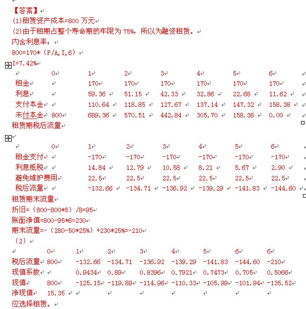(1)計算租賃資產(chǎn)成本、租賃期稅后現(xiàn)金流量、租賃期末資產(chǎn)的稅后現(xiàn)金流量。